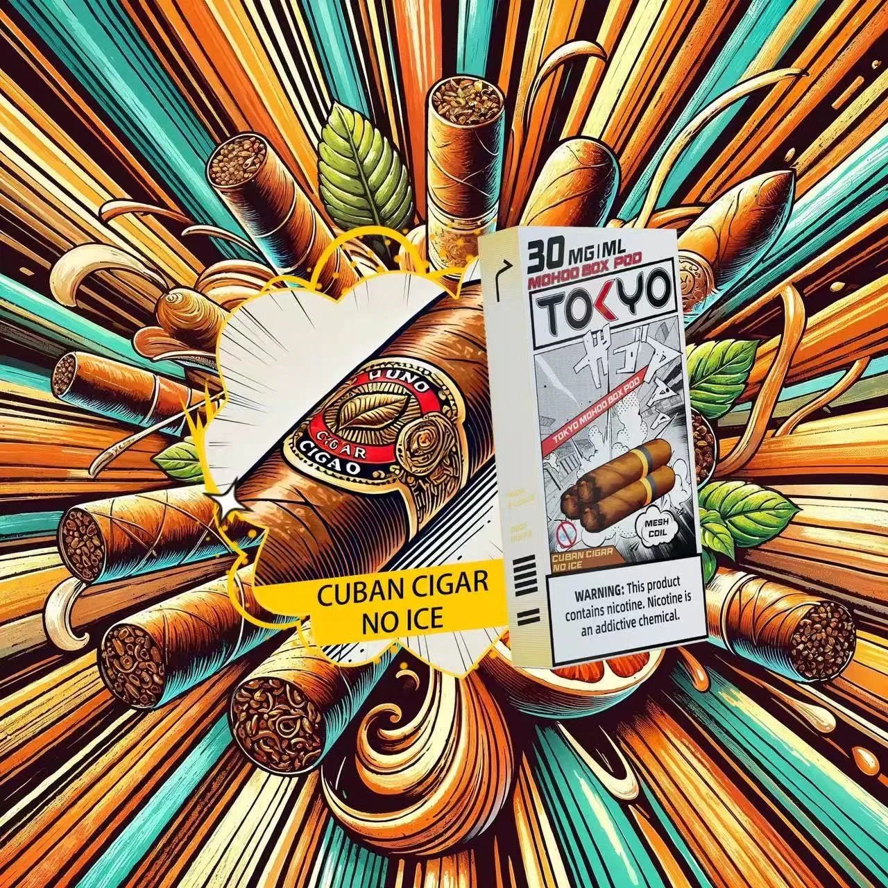 東京魔盒電子菸煙彈採用植物甘油與丙二醇基底,搭配高純度尼古丁鹽,容量12mL、尼古丁強度30mg/mL(3%),搭載1.0Ω鋼網棉霧化芯,設計為一次性pod,約10,000口,吸引力持久。