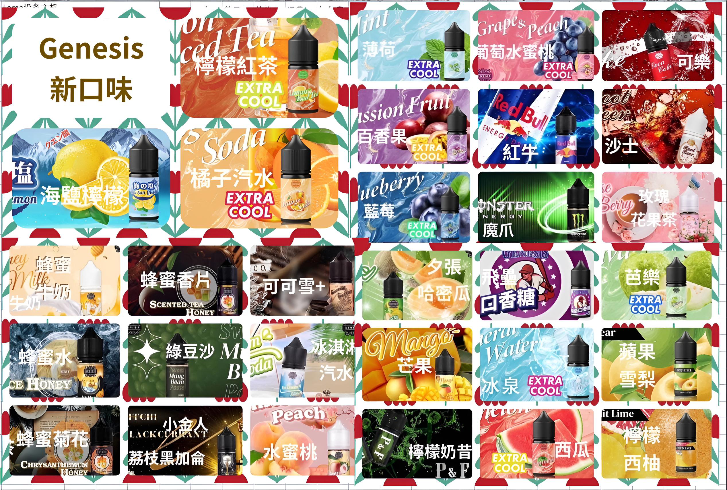 GENESIS創世紀煙油以精準調香與層次分明的風味著稱,將水果、甜品與飲品等元素巧妙融合,打造既熟悉又帶有驚喜感的小煙風味體驗。專為POD與小煙系統設計,霧化表現穩定順滑,入口甜度與涼感拿捏適中,長時間享受也不容易產生負擔,適合追求高還原度與耐抽口糧的電子煙玩家。